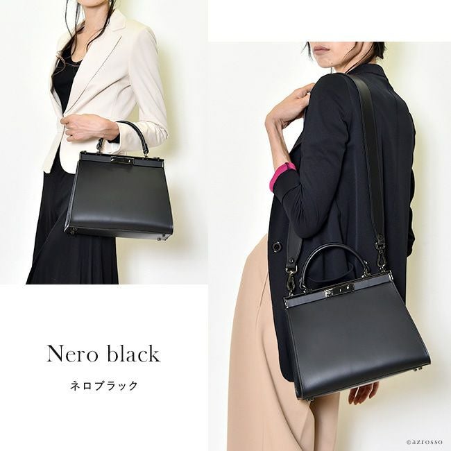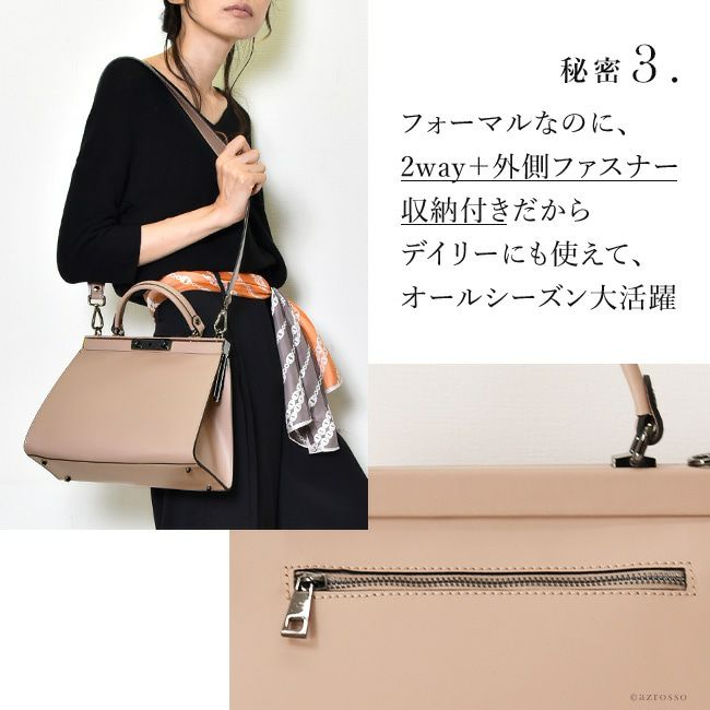 Kirsten フォーマル 2way ハンドバッグ がま口 ショルダーバッグ 本革 ワンハンドル 自立 おしゃれ イタリア ブランド 底鋲 肩掛け 軽量 フォーマルバッグ