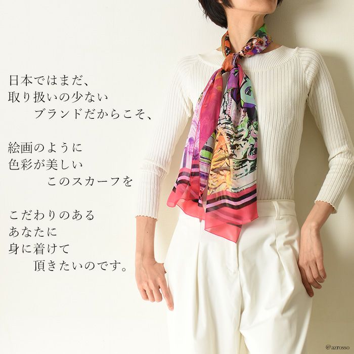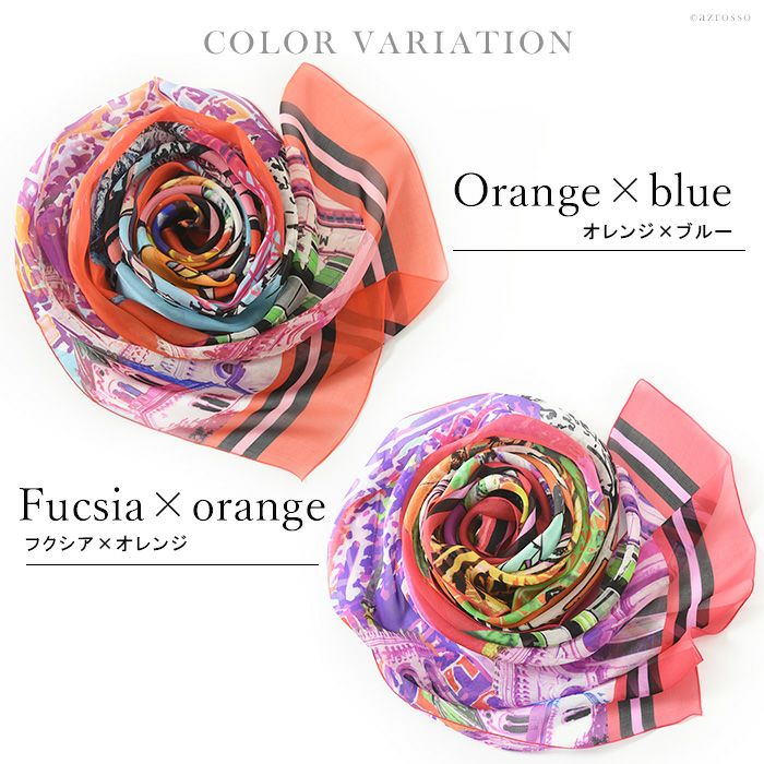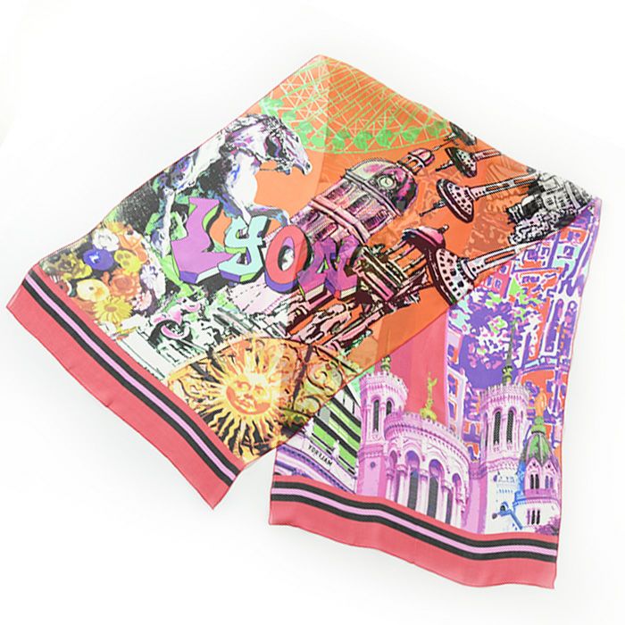 フランス製 シルクスカーフ 43cm×140cm 大判 シルク100% リヨン柄 MALFROY マルフロイ オレンジ ブルー フクシア ピンク