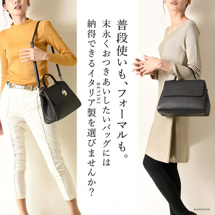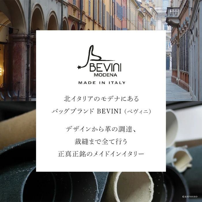 イタリアの中でもハイクオリティなバッグを作ることで知られる北イタリア・モデナで1972年に創業したBEVINI(ベヴィニ / ベビーニ)。メゾンブランドだけが仕入れることのできる高級なレザーを入手する特別なルートを持ち、常に最高品質の本革のみを使用して完全に手作りされています。100%メイドインイタリーでありながら驚きのコストパフォーマンス。質の良いバッグをバリエーション豊かに沢山持ちたいという感度の高い女性達の心強い味方です。