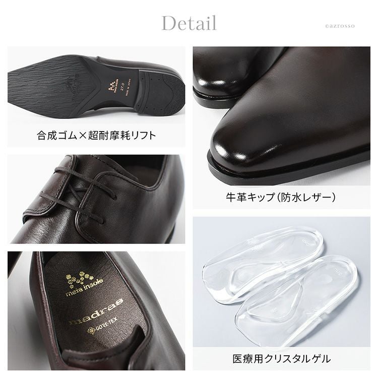 ▼特徴:メンズ 靴 本革靴 紳士 送料無料 大きいサイズ 小さいサイズ 黒 ブラック 茶色 ダークブラウン ブラウン マドラス madras ビジネス シューズ ダービーシューズ 紳士靴 おしゃれ 疲れない 牛革キップ 防水レザー 合成ゴム 超耐摩擦リフト 医療用クリスタルゲル セメント製法 GORE-TEX 防水性 透湿性 防風性 耐久性 歩きやすい 疲労回復 リカバリー