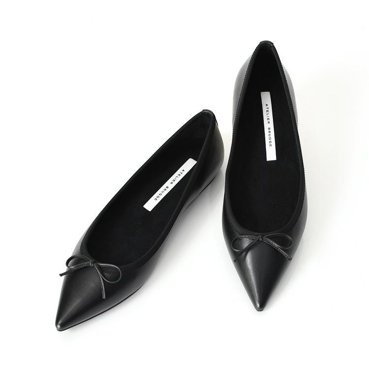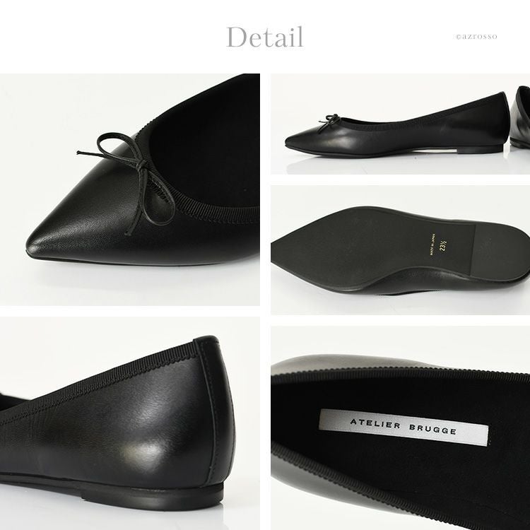 バレエ シューズ フラット パンプス 黒 日本製 レザー レディース ブラック ぺたんこ 靴 ポインテッドトゥ 普段使い 通勤 オフィス 柔らかい 歩きやすい アトリエブルージュ