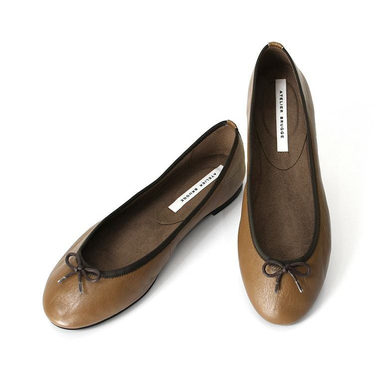 日本製 バレエ シューズ フラット パンプス 黒 本革 レザー レディース ブラック ぺたんこ 靴 ラウンドトゥ オフィス 柔らかい アトリエブルージュ 普段使い Atelier Brugge 歩きやすい オリーブ グレージュ