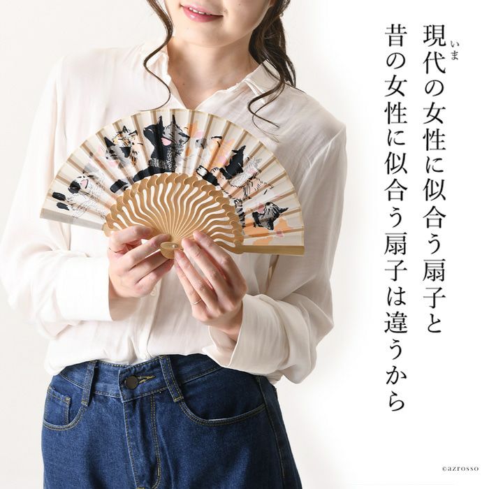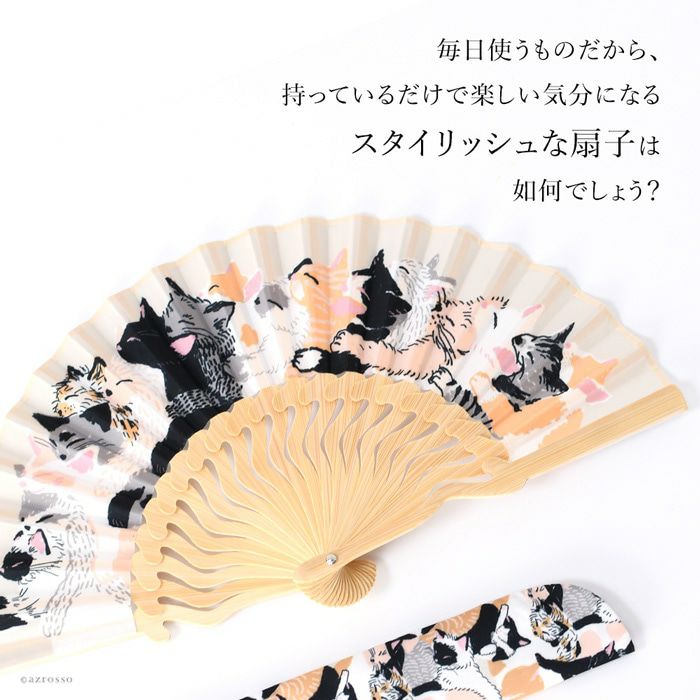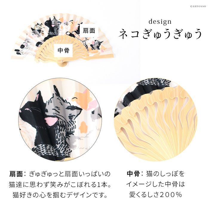 猫柄 扇子 ねこぎゅうぎゅう コンパクト 小さめ ミニ扇子 くるり【通常ネコポス配送】