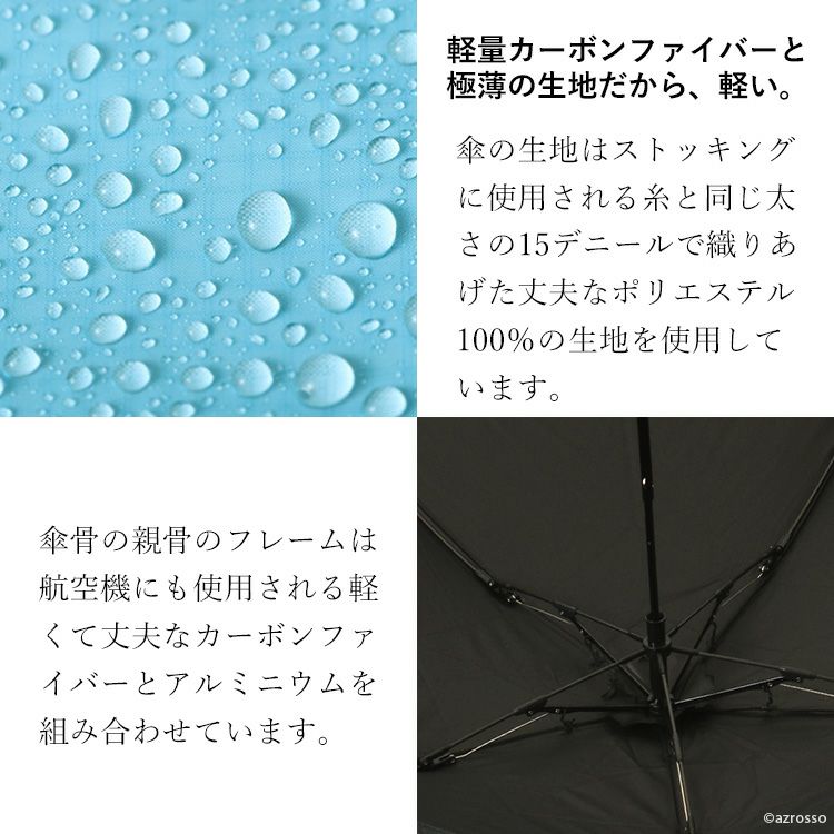 過去、軽量に飛びついて購入した際は、頼りない撥水加工だったり、強風に耐えられない等、あくまで簡易的な一時しのぎの傘が多く、機能性に期待出来ないこともありましたが、Amvelの傘は、軽量、コンパクト、耐風構造、更には強力な撥水と長期持続と、どこをとっても完璧。