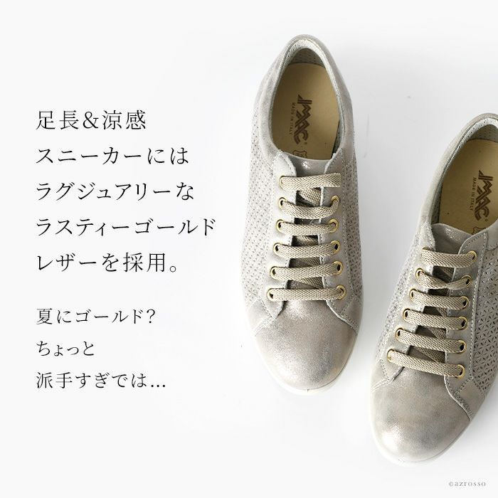 パンチング レザー スニーカー 4cmヒール コンフォートシューズ ゴールド ベージュ ラメ イタリア製 imac イマック