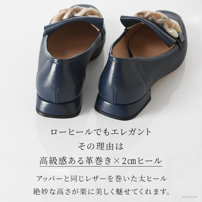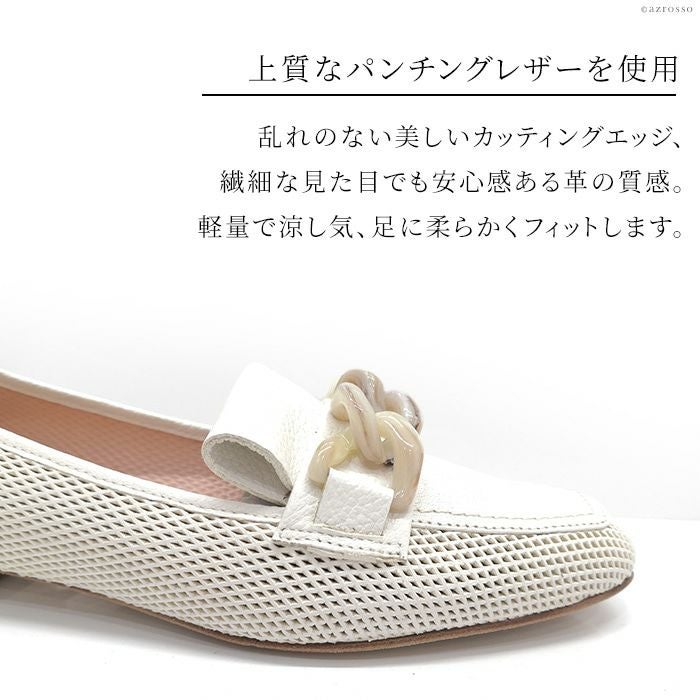ローファー パンプス ローヒール 本革 パンチングレザー メッシュ 靴 イタリア製 ブランド シューズ 紺 ネイビー 白 ホワイト 大きいサイズ