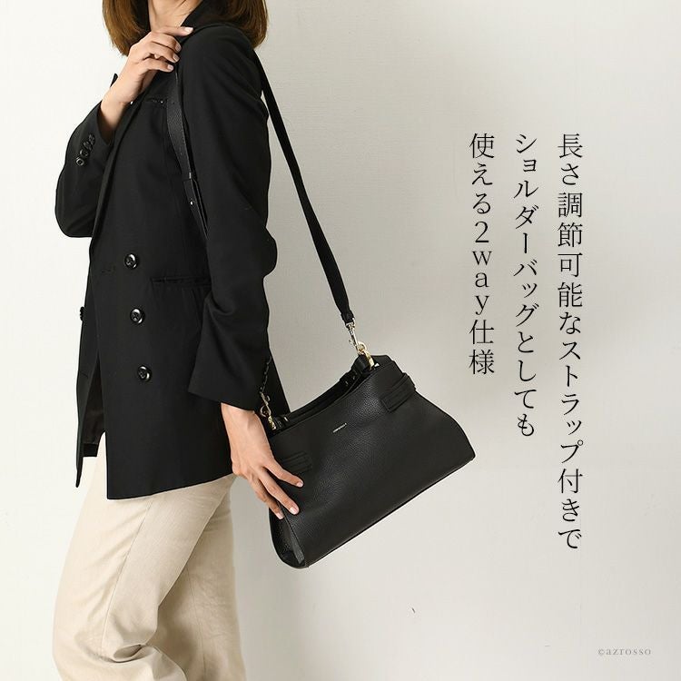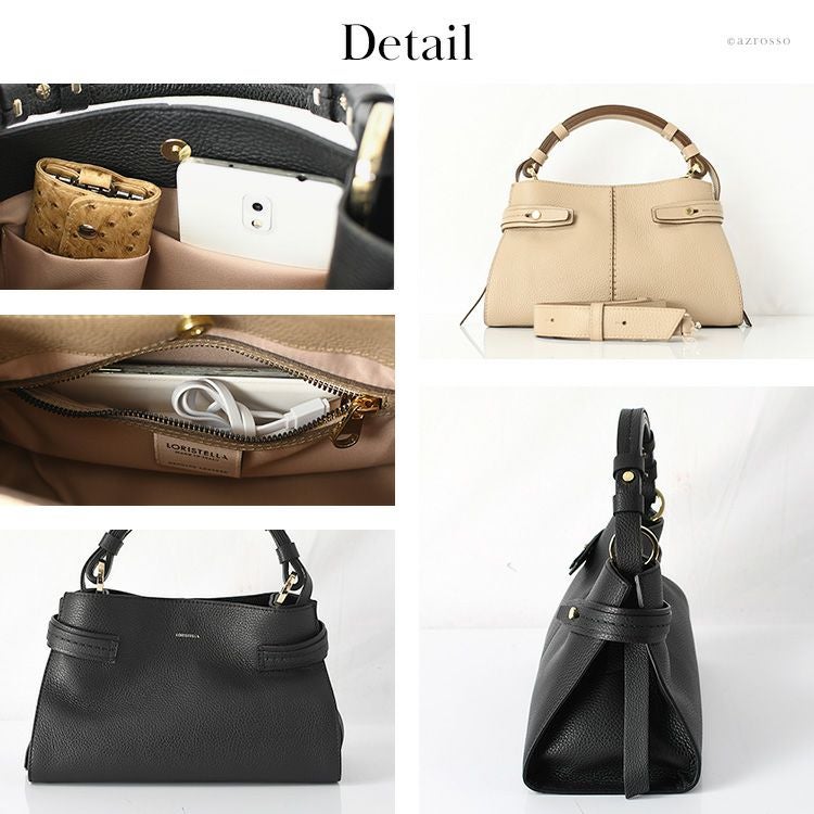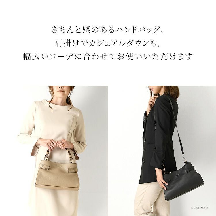 イタリア製 ハンドバッグ 2way ショルダーバッグ 太ベルト 本革 バッグ レザー ブラック 黒 トープ ベージュ