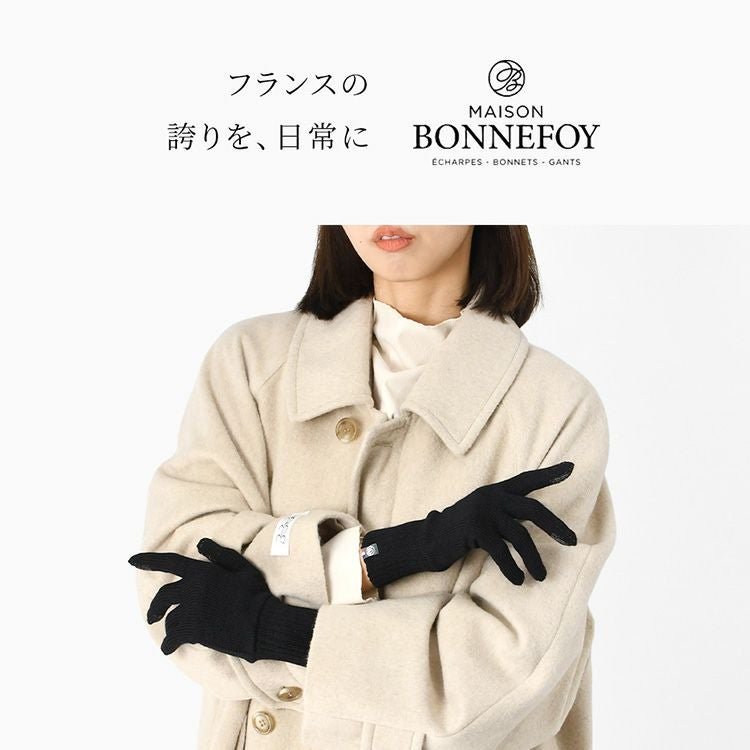 スマホ対応 手袋 ウール混 ニット 暖かい 無地 ショート フランス製 ブランド レディース MAISON BONNEFOY メゾンボンヌフォア