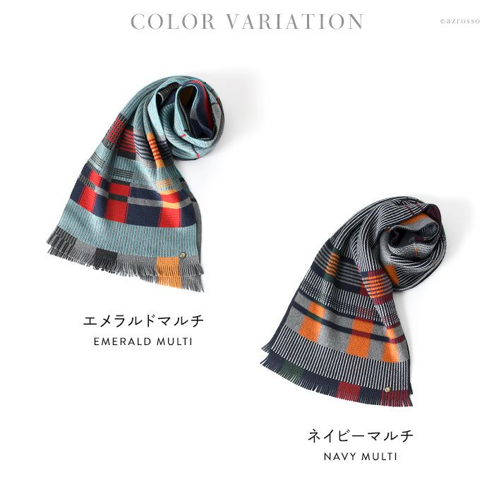 フランス製 ウール チェック ロングマフラー 上質な糸で織り上げたファーストクラス品質。レディース ブランド MAISON BONNEFOY メゾンボンヌフォア
