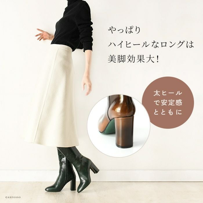 ▼特徴:ロング丈|ファスナー付き|サイドジップ|細身|ハイヒール|太ヒール|チャンキーヒール|履きやすい|脱ぎやすい|歩きやすい|アーモンドトゥ|ジョッキーブーツ