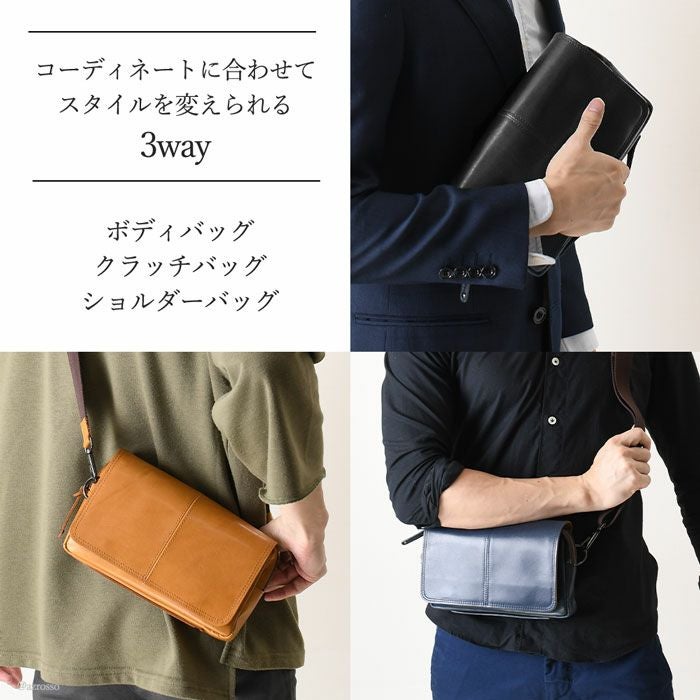 3way ショルダーバッグ 本革 クラッチバッグ ボディバッグ レザー バッグ 日本製 コンパクト ポーチ メンズ