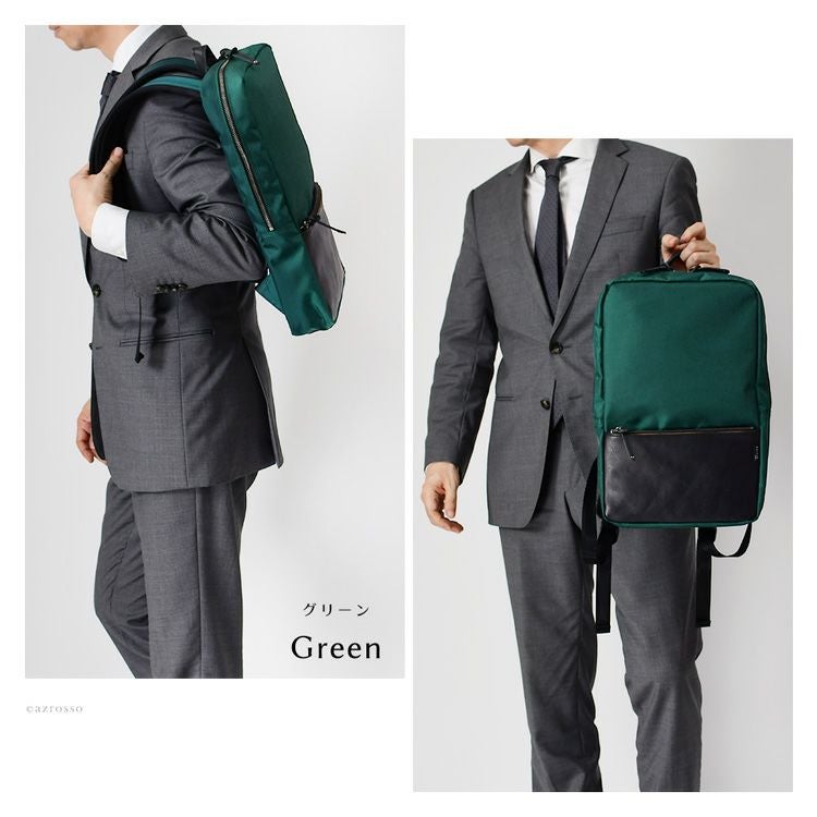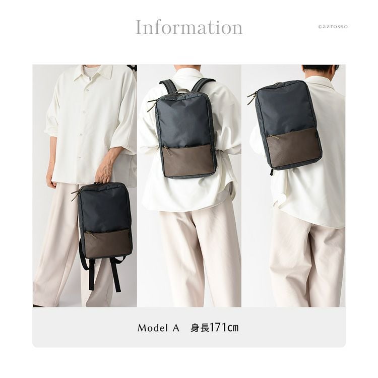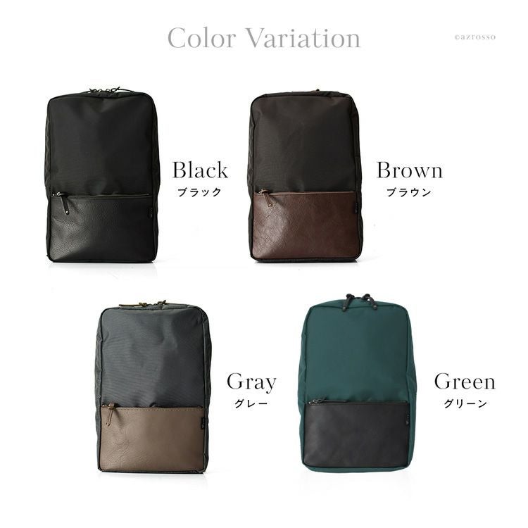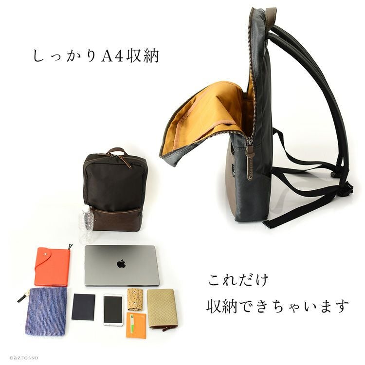 PC収納 ナイロン ビジネス リュック メンズ A4 500g以下 薄型 軽量 レザー スクエア メンズ 豊岡 鞄 日本製 ブランド ブラック ブラウン グレー 服部