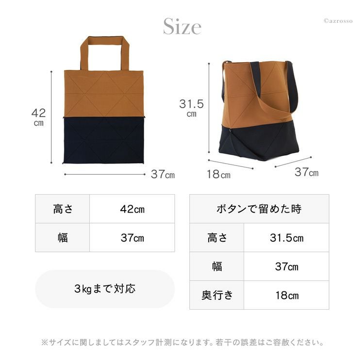 ・ボタンで留めた時:31.5cm×37cm×18cm(縦×横×マチ)