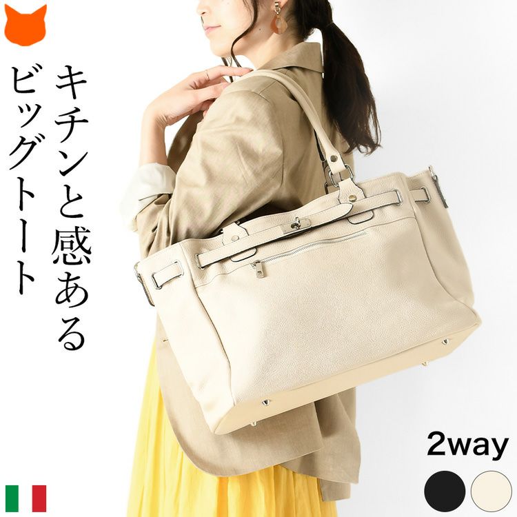 レザー トートバッグ 大容量 大きめ バッグ 本革 肩掛け イタリア製 レザー 2way ショルダーバッグ ビッグバッグ 黒 白 ホワイト ブラック