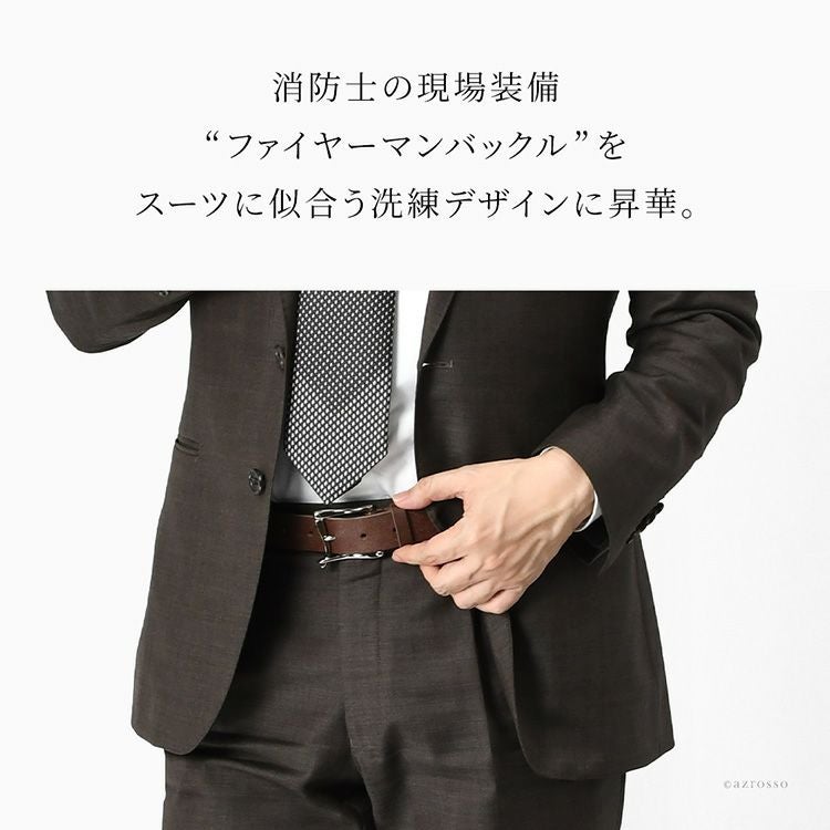 日本製 ベルト メンズ 本革 幅30mm ファイヤーマンバックル 簡単着脱 ビジネス カジュアル スーツ シンプル 大きいサイズ対応 ギフト対応