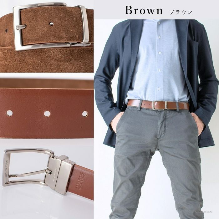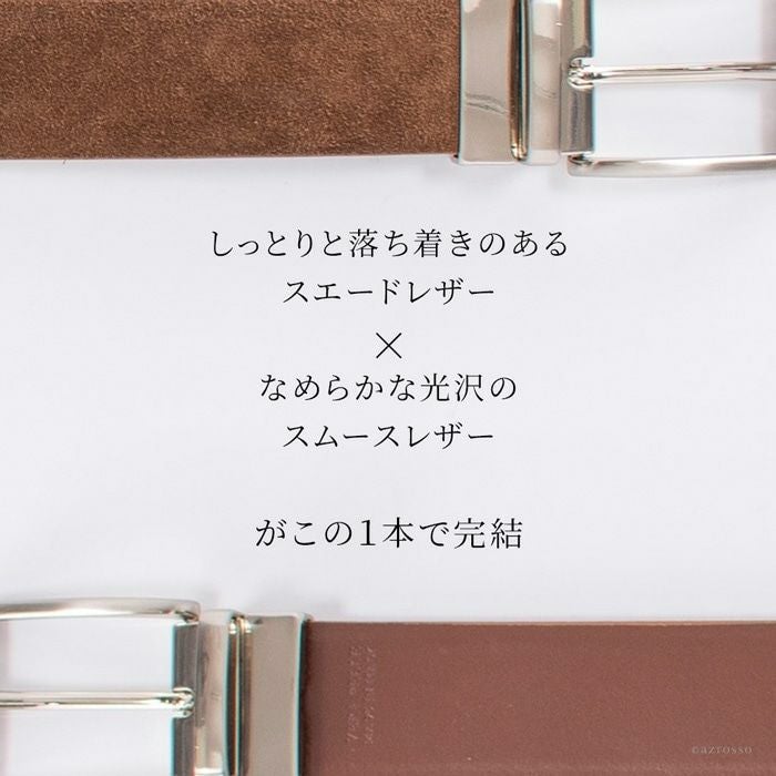 レザー ベルト メンズ イタリア製 リバーシブル ブラック 黒 ブラウン 茶色 2way スエード スムースレザー