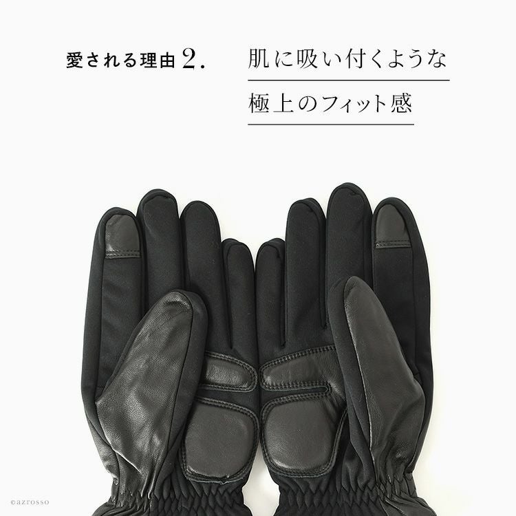 ▼特徴:スマホ対応|タッチパネル対応|レザーグローブ|フィット感|滑らか|柔らかい|ニット|無地|耐水|光沢感|ツヤ感