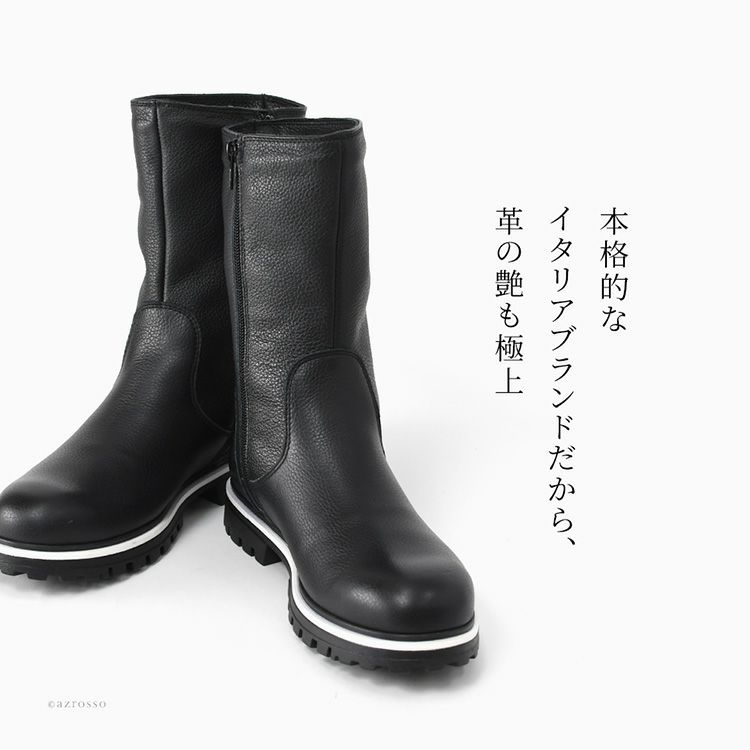 イタリア製 ムートンブーツ ショート レディース 本革 ショートブーツ ミドルブーツ 厚底 スノーブーツ サイドジップ 滑らない おしゃれ 撥水 加工 黒