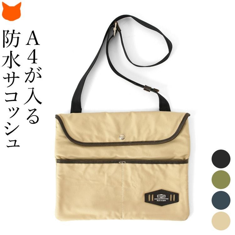 防水 サコッシュ a4 軽量 薄マチ 日本製 ショルダーバッグ サコッシュバッグ 斜め掛け バッグ 撥水 軽い 薄い 使いやすい クロス ボディバッグ 肩掛け 黒 ブラック 紺 ネイビー ベージュ カーキ 大人 カジュアル レディース
