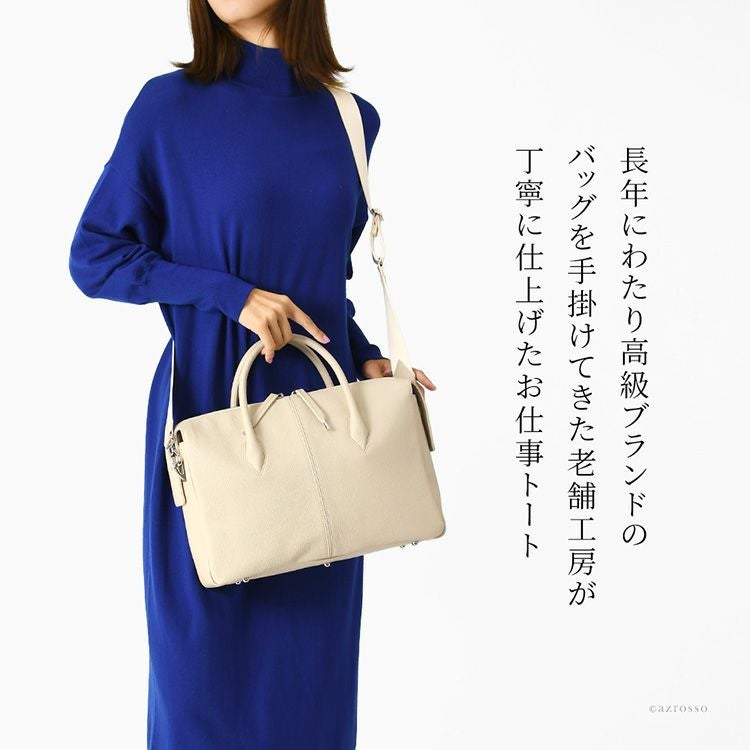 ▼特徴:本革 日本製 ビジネスバッグ レディース ビジネストート ショルダーバッグ 2way 肩掛け A4 PC 13インチ 大きめ 大容量 キャリアウーマン 大人 女性 ブラック 黒 キャメル ブラウン 茶色 ブルー 青 アイスブルー 水色 アイボリー 白 通勤 ビジネス オフィス