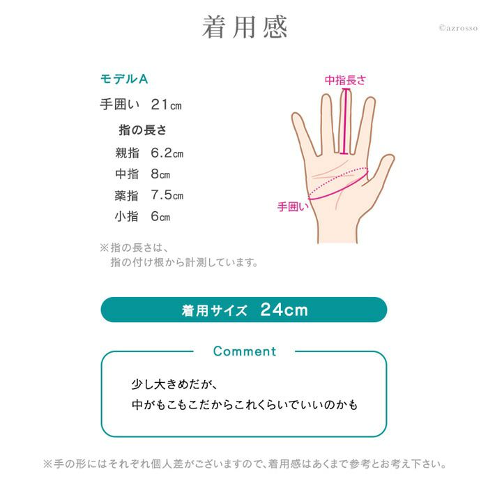 ※手の形にはそれぞれ個人差がございますので、着用感はあくまで参考とお考え下さい。