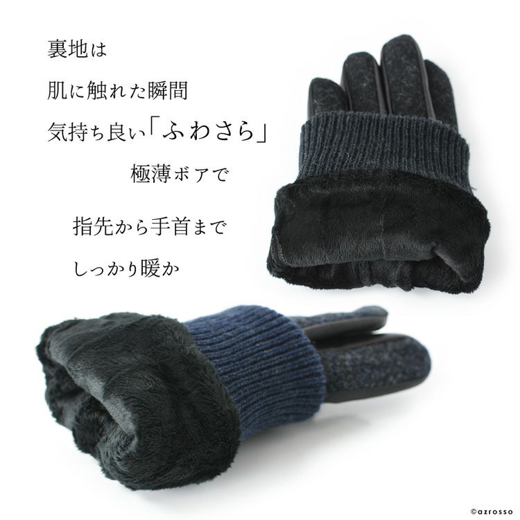 ▼特徴:スマホ対応|タッチパネル対応|スマートフォン対応|通電革|ツイード生地|マイクロボア|暖かい|防寒|レザーグローブ