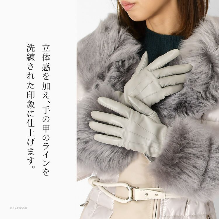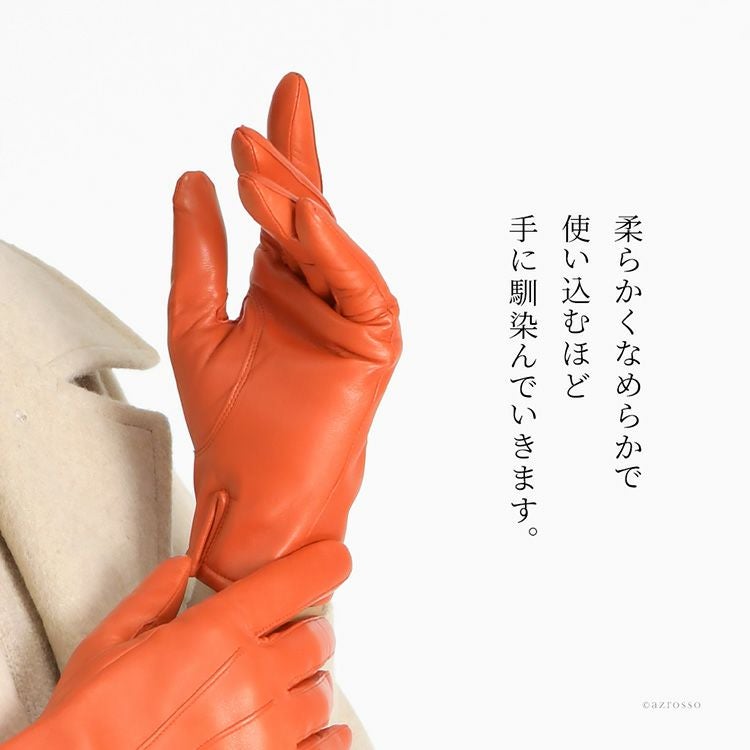 ▼特徴:ラムレザー 手袋 日本製 カシミヤ100% 羊革 レザー手袋 革手袋 暖かい イタリアレザー グレー グリーン オレンジ ベージュ