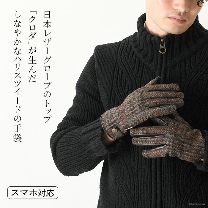 スマートフォン対応のハリスツイード手袋をイタリアで大賞受賞の日本ブランド「クロダ」から。美しいチェック柄(ブラックウォッチ)から合わせやすいシンプルデザインまで。男性へのクリスマスプレゼントにおすすめ/ ハリスツイード 手袋 スマホ対応 クロダ メンズ タッチパネル対応 通電 グローブ HarrisTweed クロダ ブランド 日本製【通常ネコポス配送】