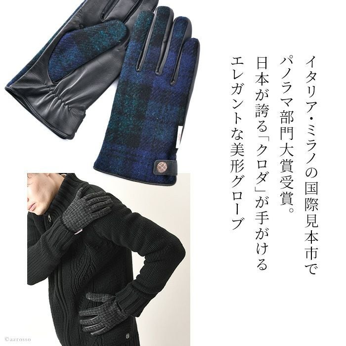 イタリアで大賞受賞の日本ブランド「クロダ」が手がけるハリスツイードのお洒落な手袋。スマートフォン対応。クリスマスプレゼントやギフトにおすすめ/ スマホ対応 クロダ ハリスツイード 手袋 レディース タッチパネル対応 通電 抗菌 グローブ クロダ ブランド HarrisTweed【通常ネコポス配送】