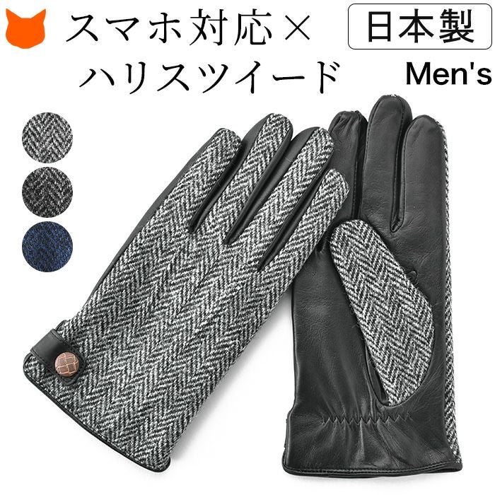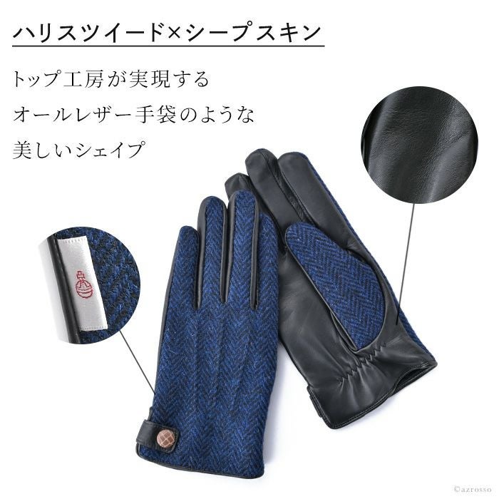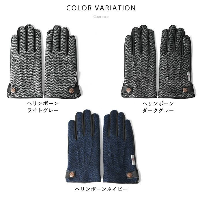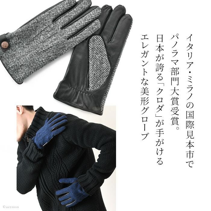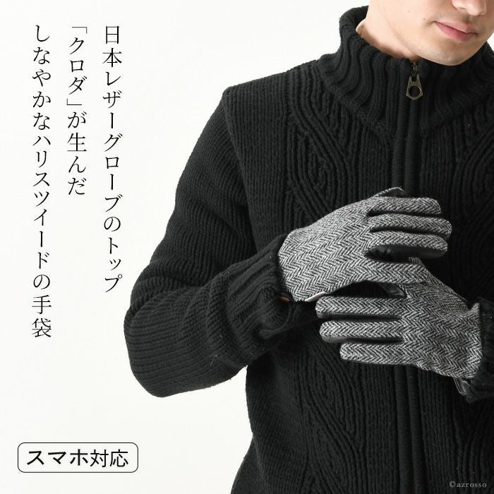 スマートフォン対応のハリスツイード手袋をイタリアで大賞受賞の日本ブランド「クロダ」から。HarrisTweedの定番、美しいヘリンボーン柄。男性へのクリスマスプレゼントにおすすめ/ ハリスツイード 手袋 スマホ対応 クロダ メンズ ヘリンボーン タッチパネル対応 通電 グローブ HarrisTweed クロダ ブランド 日本製【通常ネコポス配送】