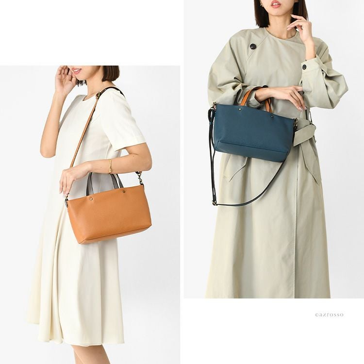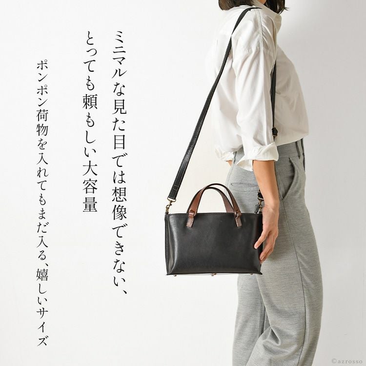横長×マチ広。小さめながらA5収納、3層式で自立する普段使いに丁度いいショルダーハンドバッグ。上質な牛革使用。斜め掛けもでき、ミニトートバッグとしても使える2WAY仕様の日本製ブランドのレザーバッグ 日本製 ミニ ショルダーバッグ レディース 斜めがけ 軽量 本革 2way ハンドバッグ 横型 ペットボトル入る マチ広 3層 無地 ファスナー ポシェット