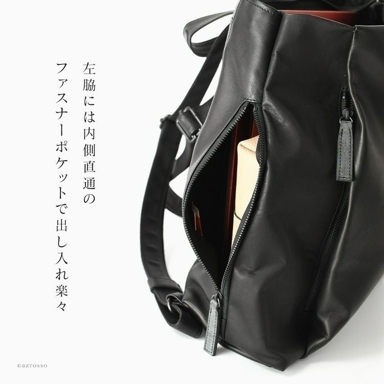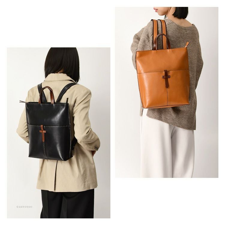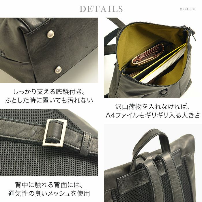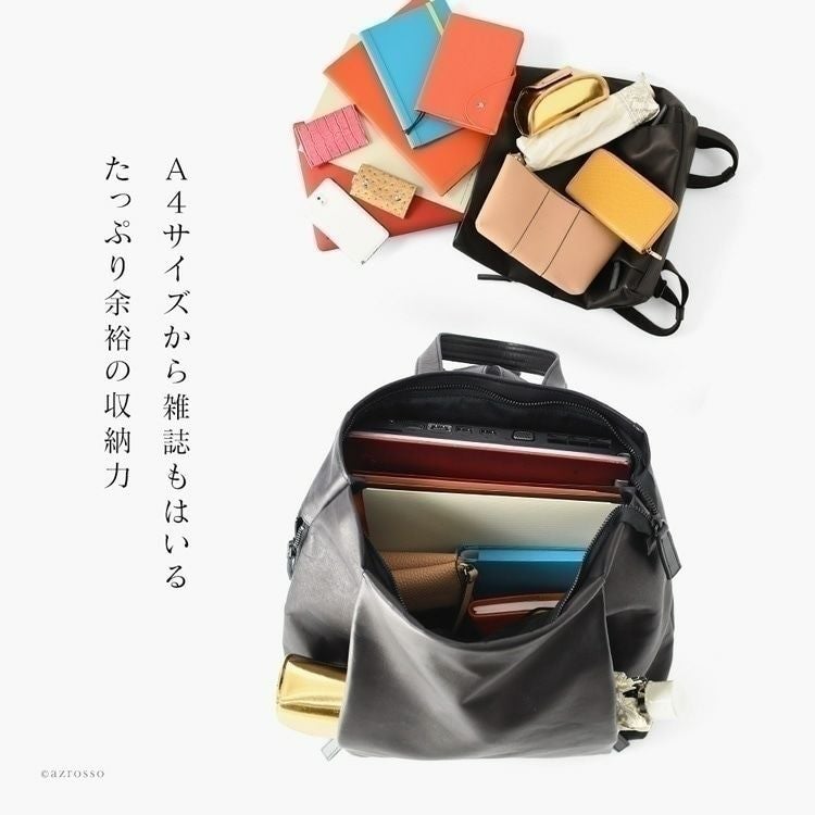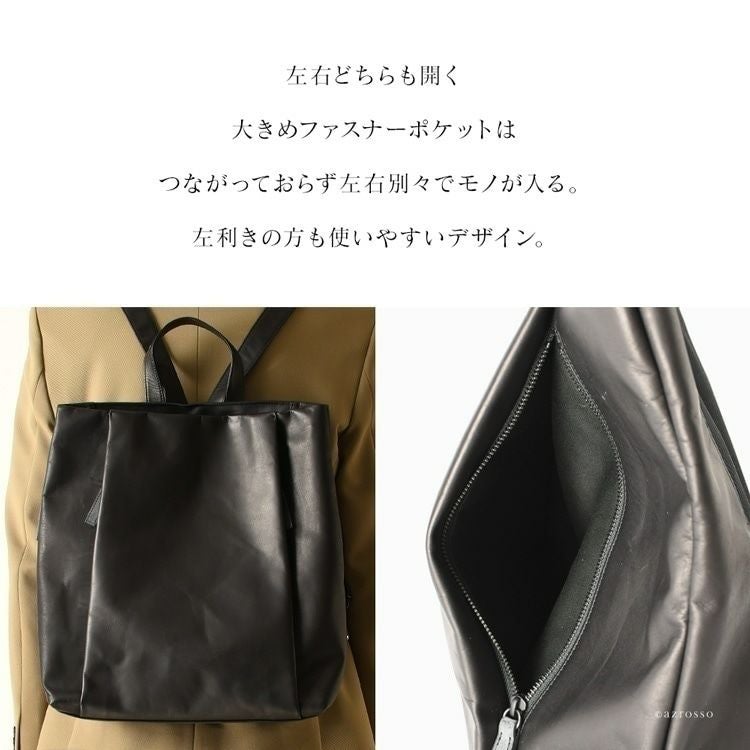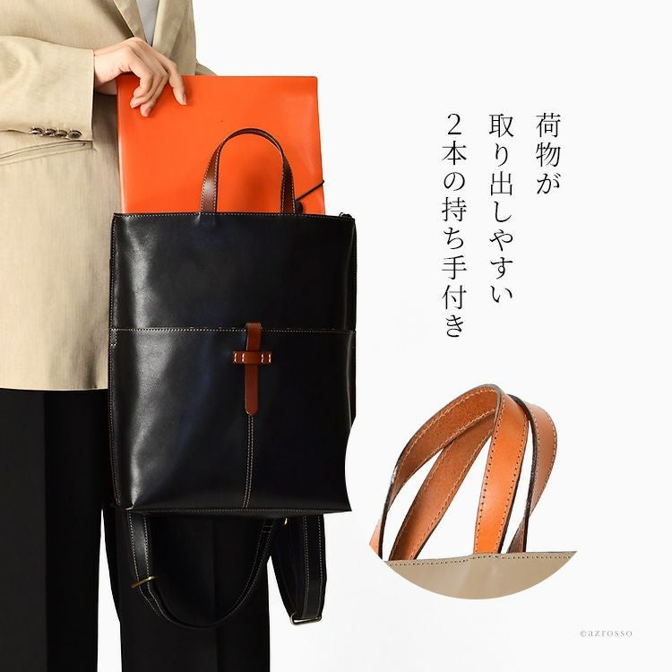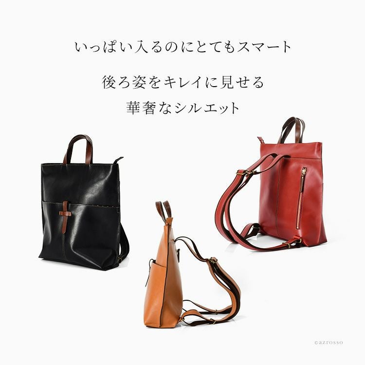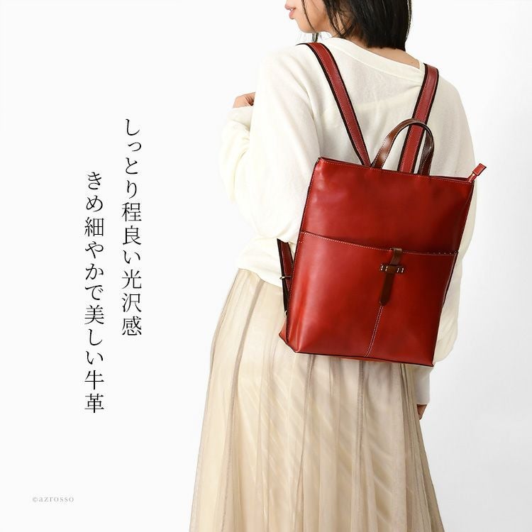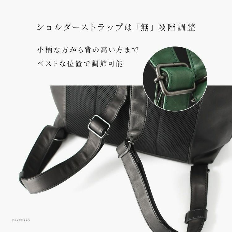 Z後ろ姿をキレイに見せる、高級感漂う本革リュック。スマートながらA4対応、マチ広なので500mlペットボトルや長財布も楽々収納できる日本製スクエアリュック 本革 リュック 日本製 A4 スクエア マチ広 軽量 レザー ビジネスリュック レディース きれいめ サーチ