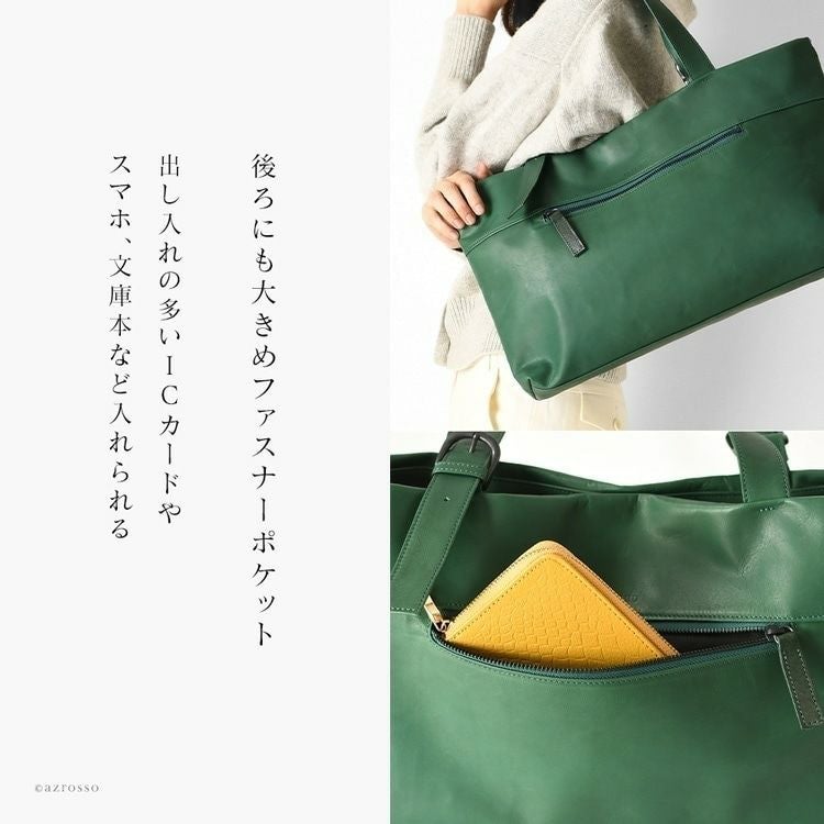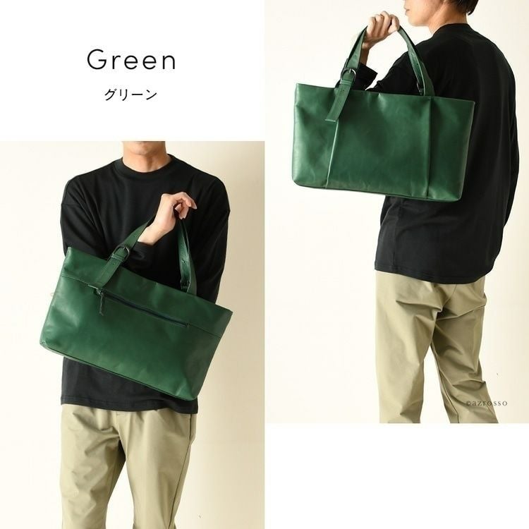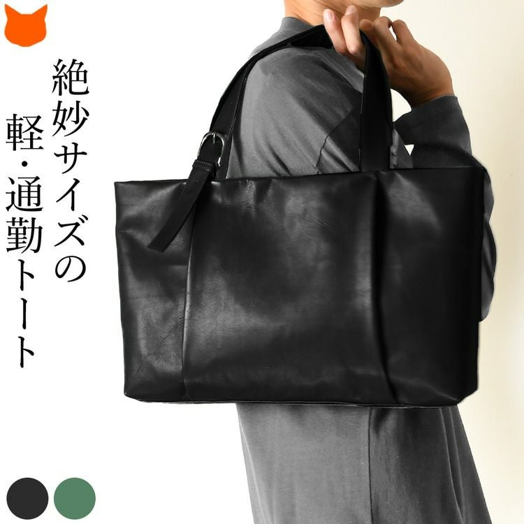A4収納かつ本革なのにリンゴ約2個分と超軽量なレザートートバッグ。長さ調節可能ハンドルで厚手のコートの上からでも肩掛け楽々な日本製ブランドLILY(リリー)のメンズビジネスバッグ 横長 トートバッグ 軽量 本革 a4 ビジネス トート バッグ 軽い カバン PC 収納 パソコン 持ち手 長め ストラップ おしゃれ 横型 鞄 肩掛け 軽量 レザー 黒 ブラック 緑 グリーン 日本製 メンズ