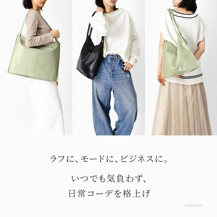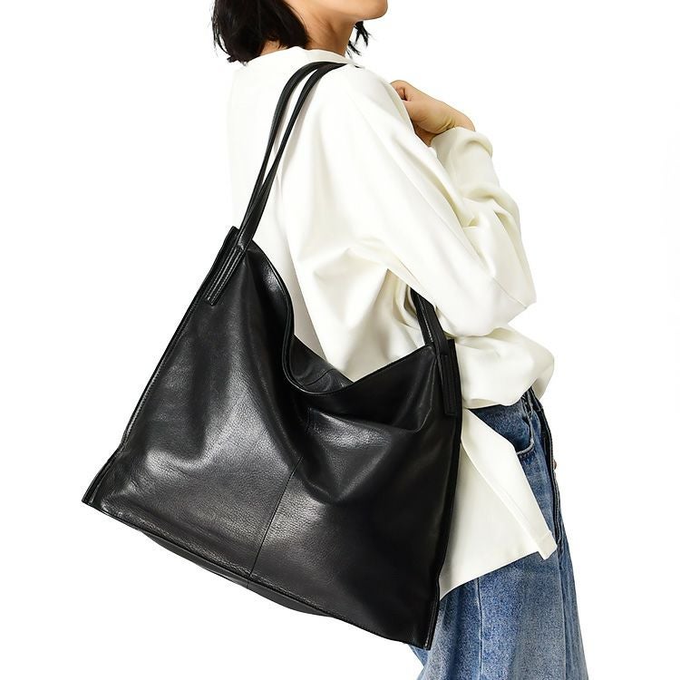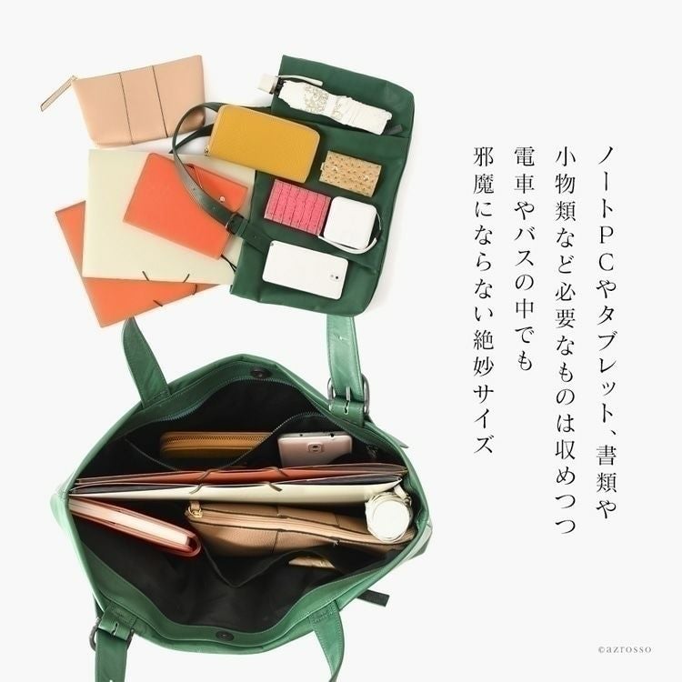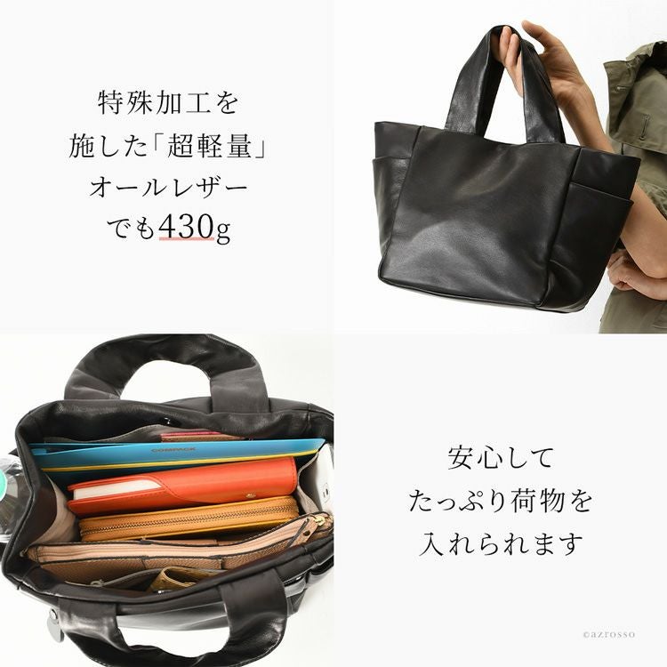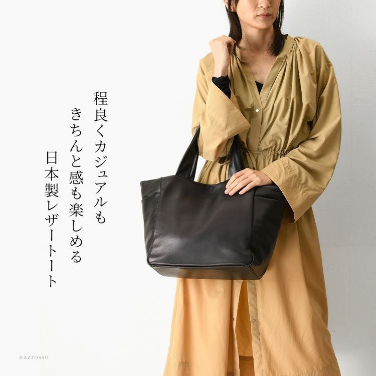 オールレザーなのに超軽量な日本製ブランドLILY(リリー)のトートバッグ。A4対応、お弁当も入るマチ広大きめサイズ。くたっと柔らかい上品な牛革を使用し、ビジネスバッグとしてもお持ちいただけます レザー トートバッグ 軽量 軽い 通勤バッグ a4 大きめ 肩掛け ビジネストート 本革 大容量 ビジネスバッグ マチ広 シンプル きれいめ 無地 仕事カバン 仕事用バッグ ビジネス バッグ 黒 ブラック 日本製 レディース