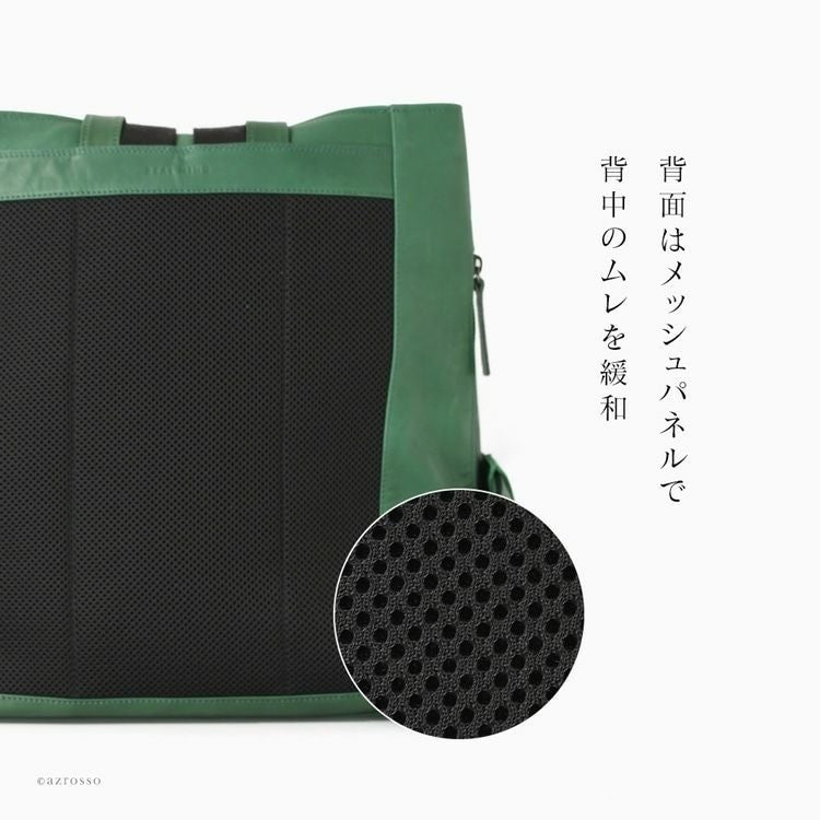 A4収納かつ本革なのにリンゴ約2個分と超軽量なレザーリュック。背中がムレにくい背面メッシュ素材。電車・バスの中でも邪魔にならない絶妙なサイズ感の日本製ブランドLILY(リリー)のメンズビジネスリュック 軽量 リュック 本革 a4 スクエア 軽い レザー ビジネスリュック 大容量 ノート pc ビジネス バッグ リュックサック おしゃれ シンプル 大きめ メンズリュック 黒 ブラック 緑 グリーン 日本製 メンズ 男性