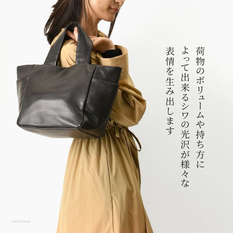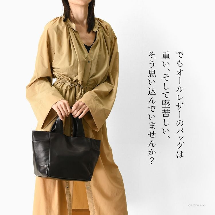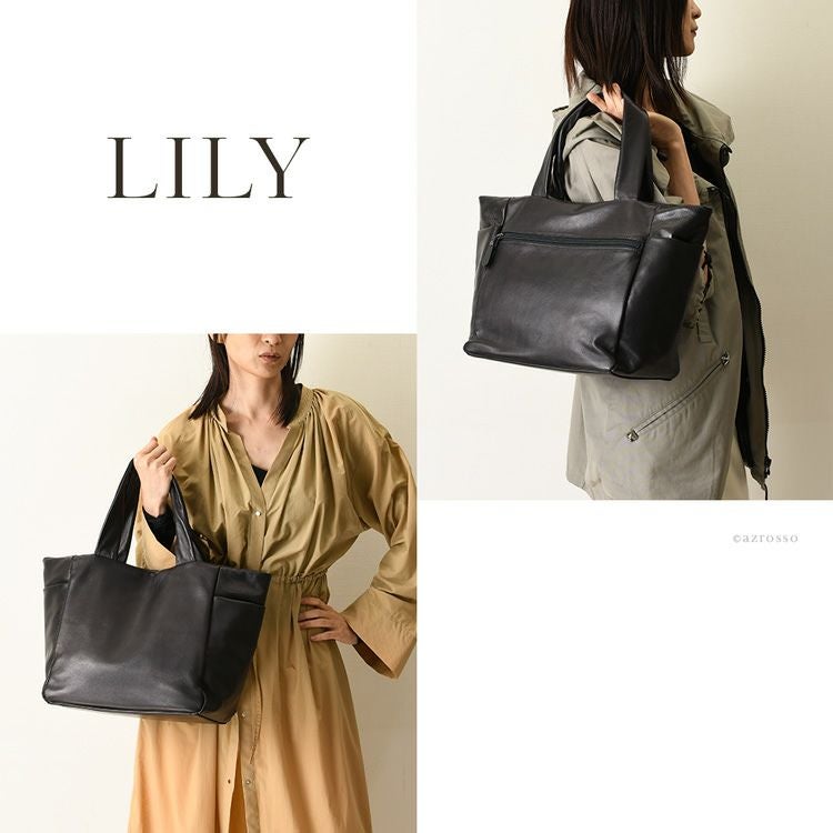 オールレザーなのに超軽量な日本製ブランドLILY(リリー)のミニトートバッグ。お弁当も入るマチ広大きめサイズ。くたっと柔らかい上品な牛革を使用し、程良くカジュアルも抜け感も楽しめるレザーハンドバッグです 日本製 レザー ミニ トートバッグ 500g以下 軽量 軽い 通勤バッグ 小さめ 本革 大容量 ハンドバッグ マチ広 トート バッグ マチ付き 横型 シンプル きれいめ 無地 仕事カバン 仕事用バッグ ビジネス バッグ 黒 ブラック かばん レディース
