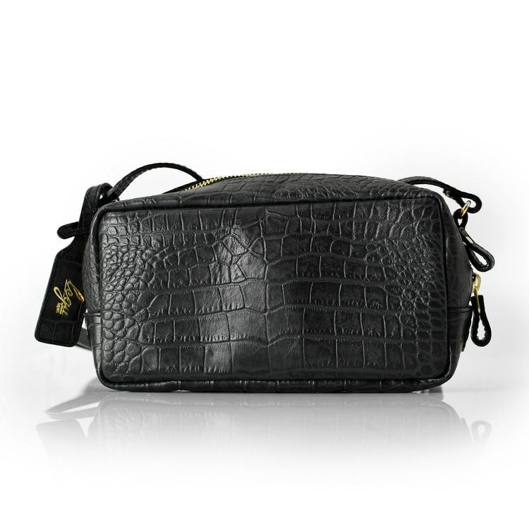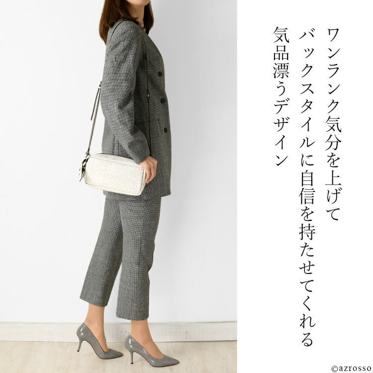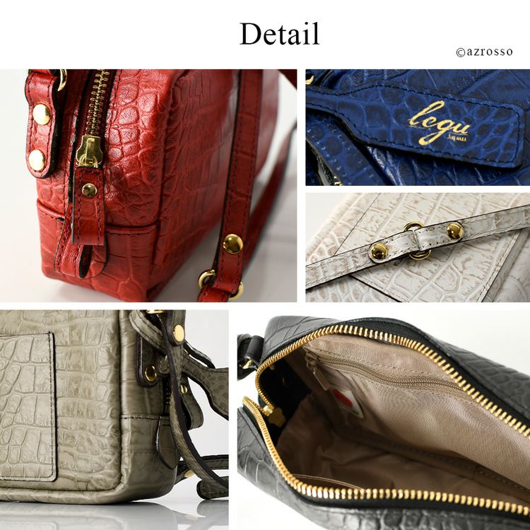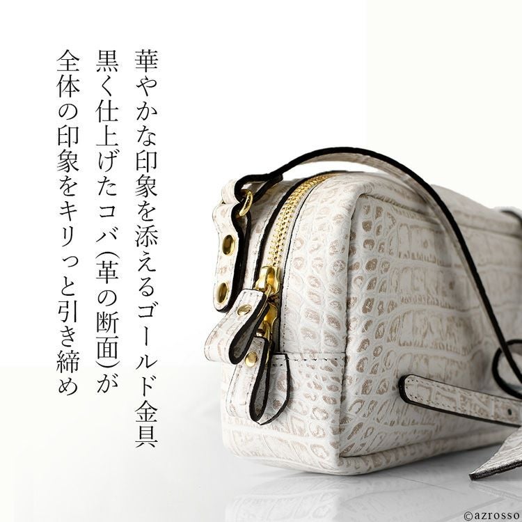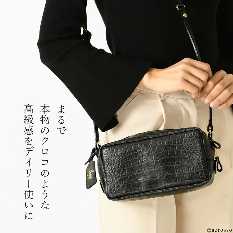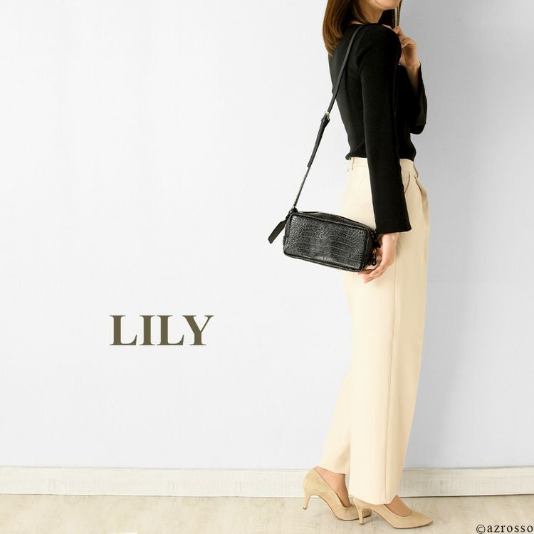 高級感漂うクロコ型押しレザーのミニショルダーバッグ。僅か270gと軽量でコンパクトながら長財布も入るマチ広なスクエアシルエット。日本製ブランドLily(リリー)のミニバッグ 日本製 クロコ 型押し レザー ミニ ショルダー バッグ レディース 斜めがけ 軽い 小さめ 本革 スクエア ミニバッグ ブランド 横長 カジュアル 軽量