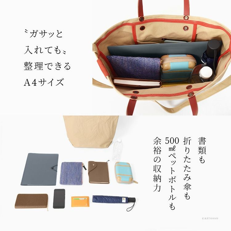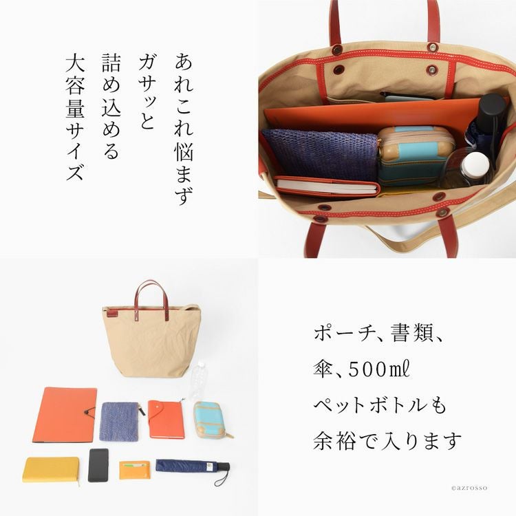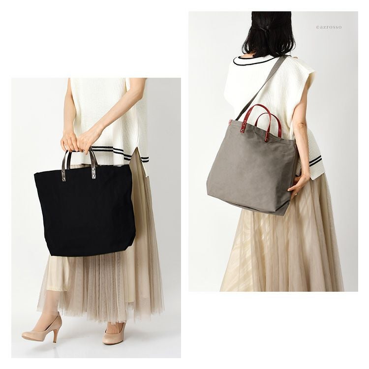 大容量サイズなのにリンゴ1.5個より軽いキャンバスバッグ。丈夫で柔軟性のある9号帆布に高級感漂う本革をプラス。日本製ブランドLILY(リリー)のショルダー付き2wayトート「ファシル」 日本製 キャンバス トートバッグ 2way ショルダー A4 大容量 9号帆布 軽量 レザーハンドル 無地 ファシル レディース
