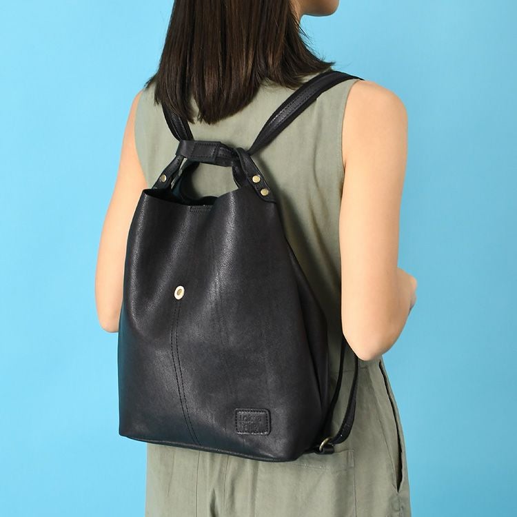 柔らかいカーフレザーが大人の着こなしを格上げするレザーリュックサック A4対応 日本製 本革レザーリュック Drop(ドロップ)大人 女性 きれいめ おしゃれ かっこいい 軽量 軽い 黒 ブラック ビジネス 通勤 仕事 自転車通勤にも