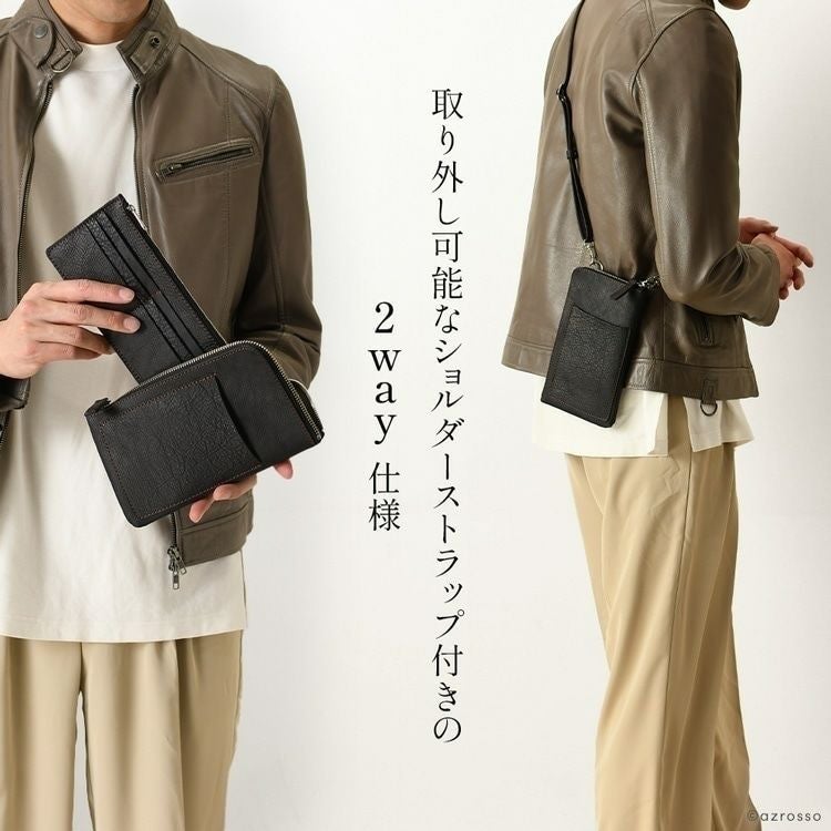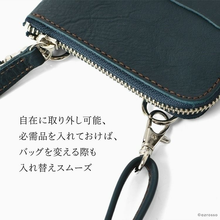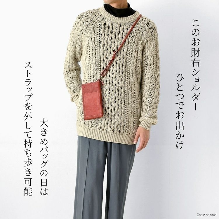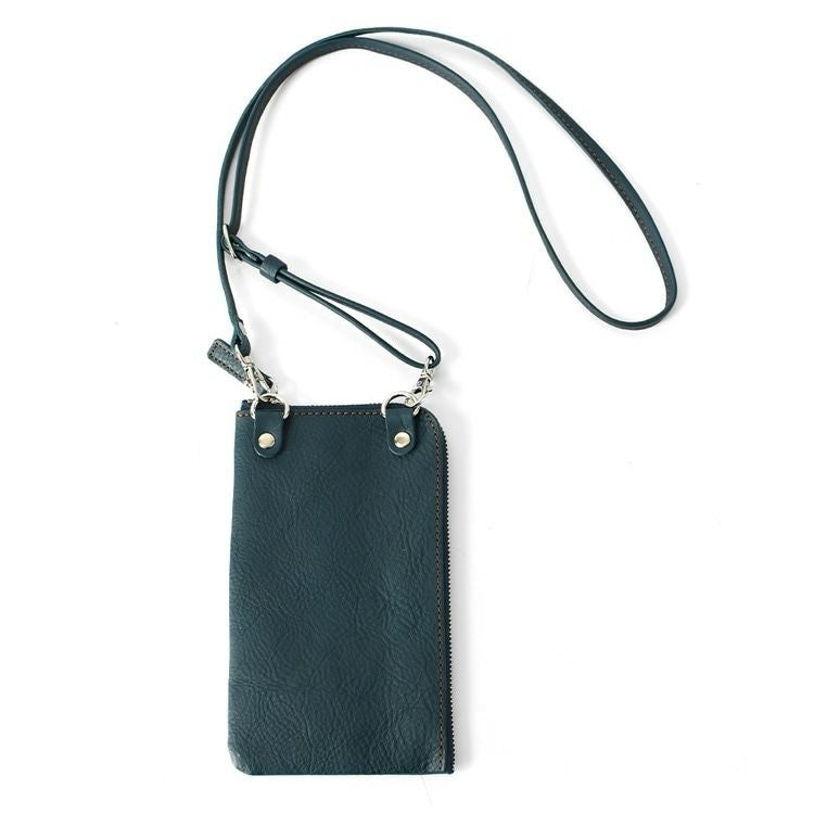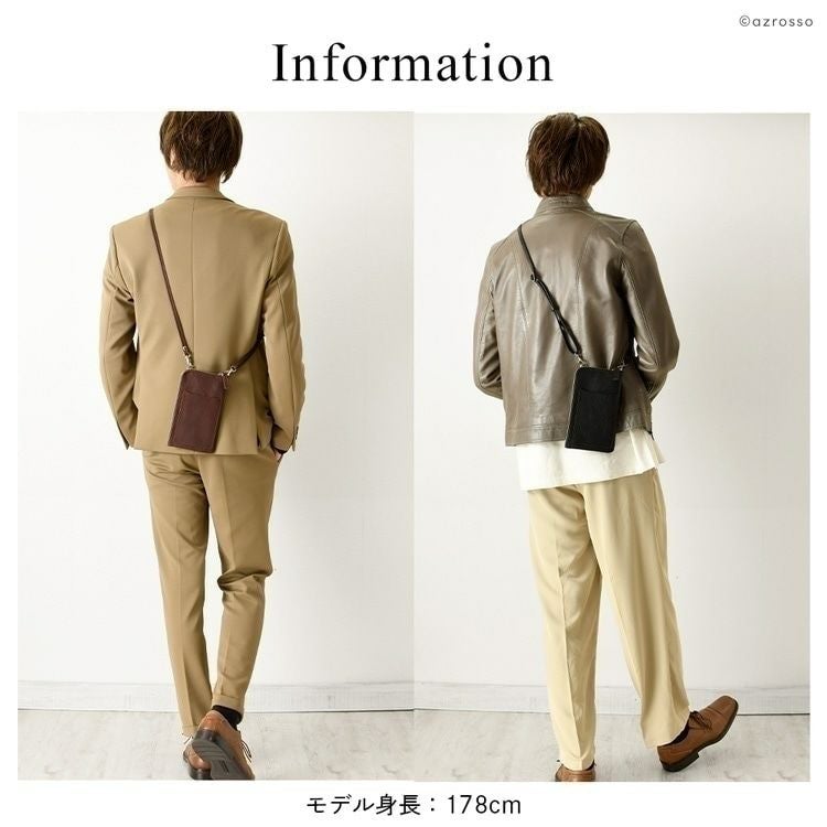 お財布ショルダーとしても持てるフラグメントケース(カードケース)付のレザースマホショルダー。取り外し可能なストラップ付の日本製ブランドLily(リリー)の極薄で軽いミニショルダー 本革 ミニショルダーバッグ メンズ スマホが入る お財布ポシェット 2way 縦型 薄マチ 日本製 黒 茶色 赤 ベージュ LILY リリー【通常ネコポス配送】