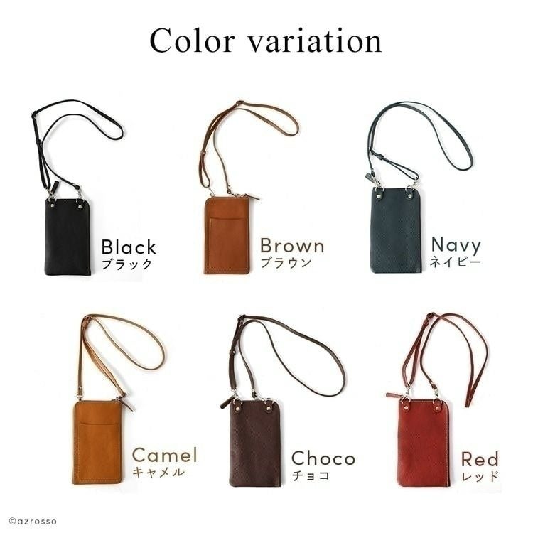 お財布ショルダーとしても持てるフラグメントケース(カードケース)付のレザースマホショルダー。取り外し可能なストラップ付の日本製ブランドLily(リリー)の極薄で軽いミニショルダー 本革 ミニショルダーバッグ スマホが入る お財布ポシェット 2way 縦型 薄マチ 日本製 黒 茶色 赤 ベージュ レディース LILY リリー【通常ネコポス配送】