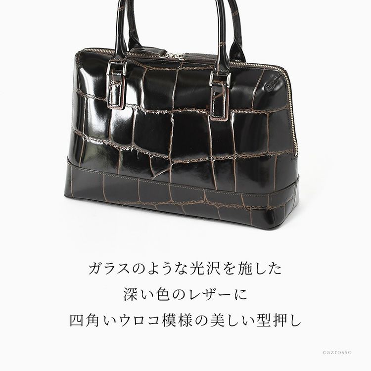 日本製 クロコ型押し ボストンバッグ レディース 軽量 おしゃれ A4 本革 トートバッグ ハンドバッグ 自立 底鋲 通勤 フォーマル