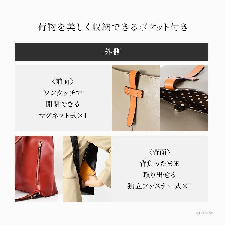 ▼特徴:スクエア型 リュックサック 牛革 無地 レザー ファスナー シンプル おしゃれ きれいめ 大人 背面 ファスナーポケット ビジネスリュック 縦長 スマート 500mlペットボトル入る マチ広 大容量