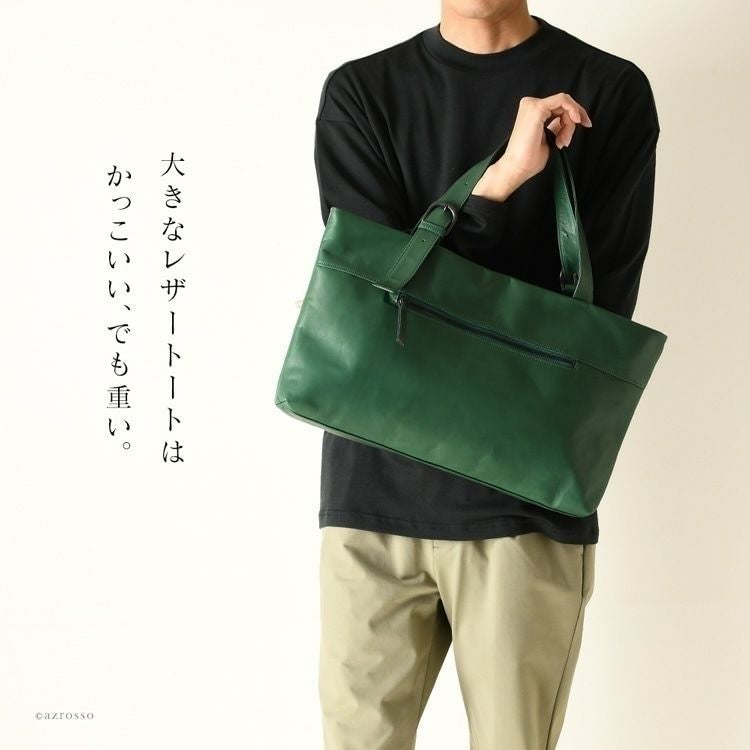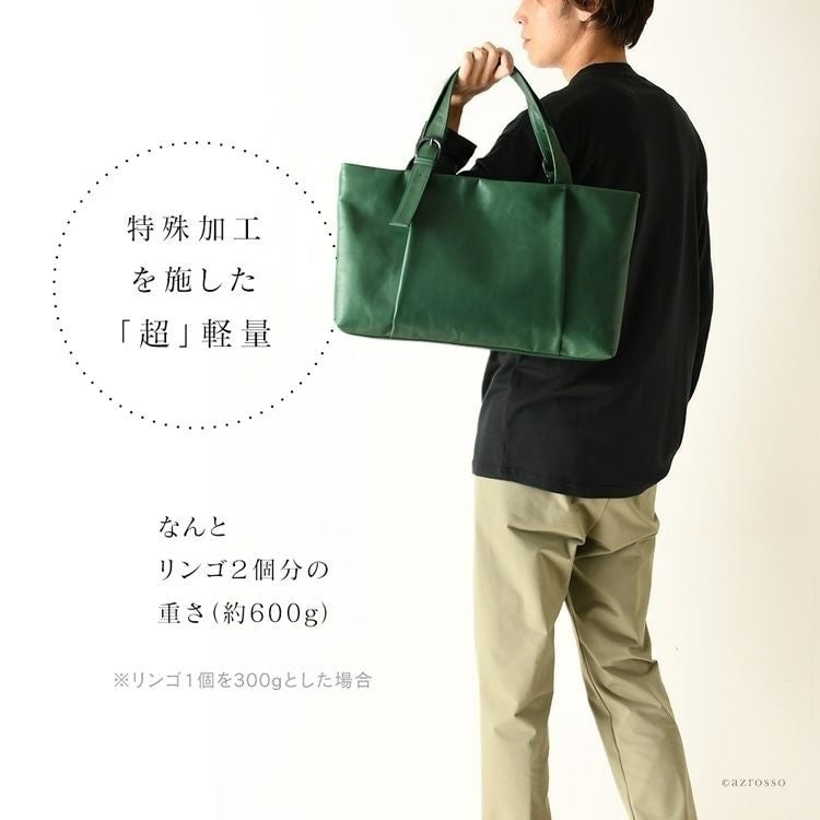横長 トートバッグ 軽量 本革 a4 ビジネス トート バッグ 軽い カバン PC 収納 パソコン 持ち手 長め ストラップ おしゃれ 横型 鞄 肩掛け 軽量 レザー 黒 ブラック 緑 グリーン 日本製 メンズ