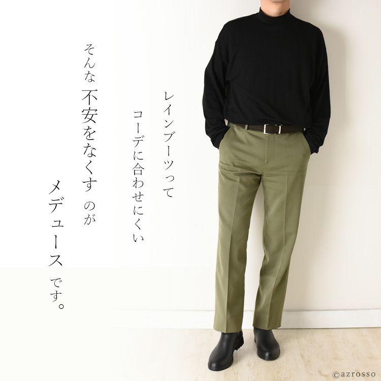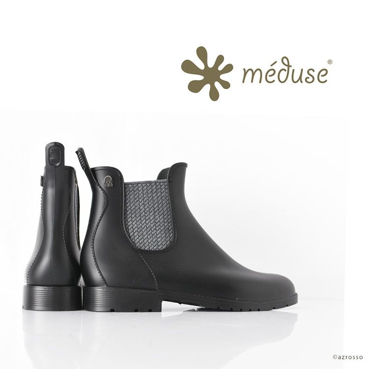 26cm-28cm│サイドゴア レインブーツ メンズ チェルシーブーツ ショート丈 黒 ブラック フランス製 ブランド MEDUSE メデュース