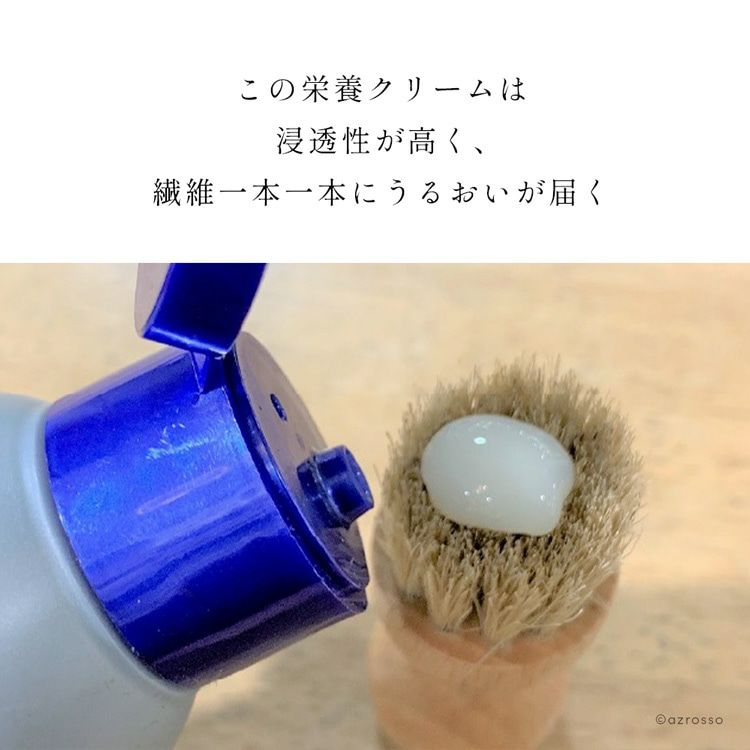 肌と同様に革底もべたつきが嫌なんです。モゥブレィのソールモイスチャライザーは革底のオイル系成分を表面に残ぜず、滑りにくい状態で仕上がる栄養クリーム。ベタつきが残らず、靴底がサラッとすることで、柔軟性を与え良い状態を保ちます。さらに、ペネトレィトブラシと合わせて使うことで、手を汚さずクリームをまんべんなく伸ばしやすいです。栄養成分が皮革の繊維一本一本に浸透し、潤いが増し、革切れも減り、革底の持久力、耐久性が向上します。