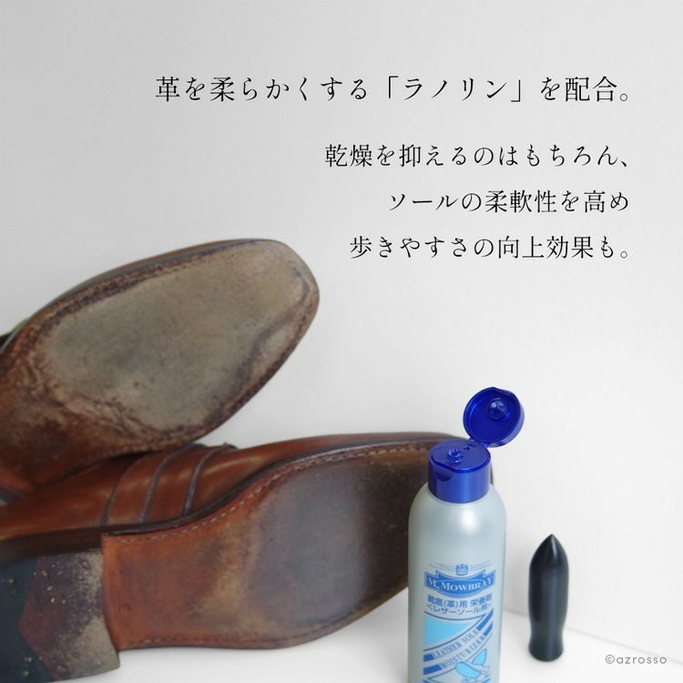 レザーソール(革底)を長持ちさせるための靴底専用の栄養クリーム。本革に保湿・栄養を与え革が柔らかくなり歩きやすさも向上する、シューケアブランド「モゥブレイ」の革底ケアクリーム 靴底 本革 レザーソール お手入れ クリーム 無色 クリア 革底 ケア 劣化防止 保湿 靴磨き シューケア ビジネスシューズ 革靴 ローファー モゥブレイ