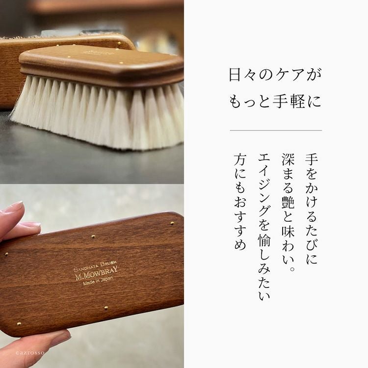 日本製 靴ブラシ 白馬毛 コードバン用 ホコリ落とし 汚れ落とし 靴磨き シューケア お手入れ ケア用品 コンパクト M. MOWBRAY モゥブレイ