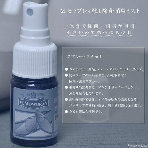 靴用除菌・消臭ミストスプレー M.MOWBRAY(モゥブレイ|モウブレイ)携帯ミニサイズ 靴、パンプス、ブーツ、スニーカー、サンダル等に