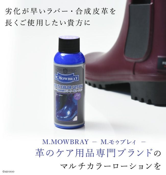 劣化が早いラバー製品や合皮の寿命を伸ばす革用クリーナー ツヤだし 汚れ落とし ラバー ビニール レインブーツやバッグをきれいに保つM.MOWBRAY(M.モゥブレィ)マルチカラーローション/